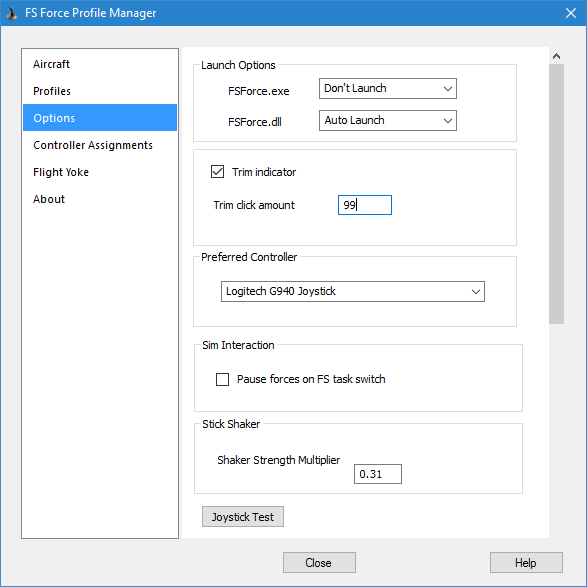 Step 3 - Controller Assignments You need to configure FS Force so it knows what keys and buttons you use for trim commands, and for brakes. Click on the Controller Assignments tab for this.
