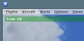 If you select to use the trim indicator, FS Force will install a gauge into each aircraft in your system. The entries will be made in Panel.cfg, which can be found in the Panel folder of each aircraft. Note that some 3rd party aircraft use a very specialized type of panel and gauge system, and as a result FS Force will be unable to install the trim gauge. An example of this is the PMDG 737 NGX. For these aircraft, trim information will be shown on screen using standard message display functions made available by FSX, as shown in the following screenshot: